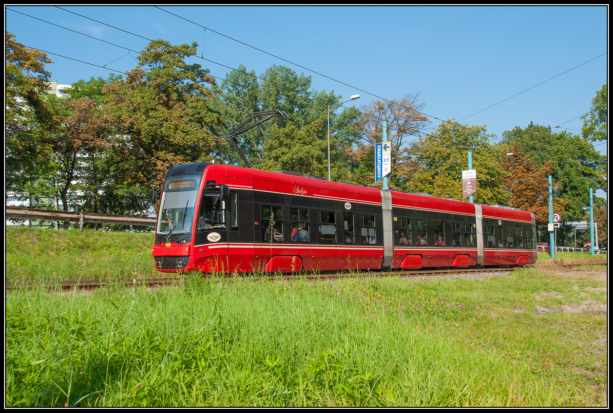 Gleislage der Pesa Twist 823 «Andzia» auf Linie 6 Richtung Katowice vorbei.