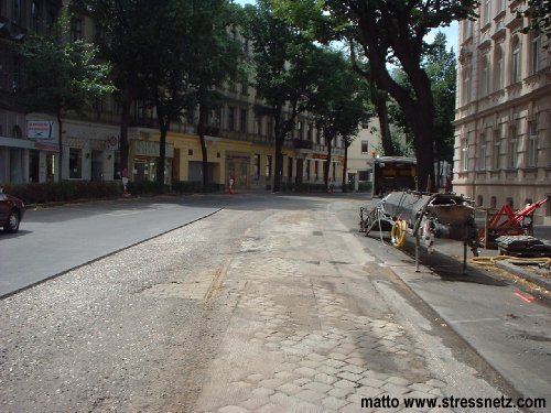 Hier wie angekündigt Bilder von den Asfaltarbeiten in der Schönbrunner Str., ex Linie 63, vom 9.7.2001.