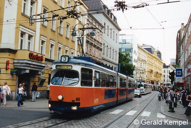 ist der 8x Tw Nr. 66, der auf der Linie 3 fährt.