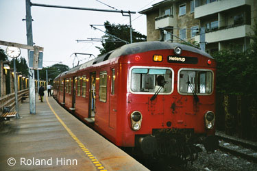 Auf dem zweiten Bild sieht man eine etwas ältere rote S-Tog-Garnitur (S-Tog