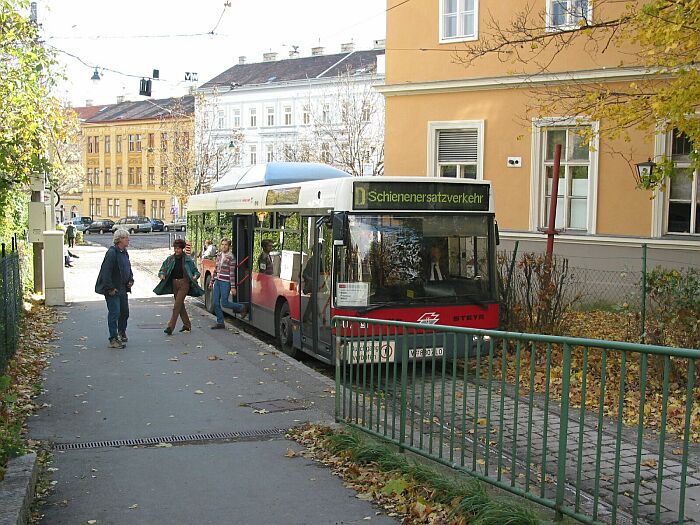 Anbei zwei Bilder vom Schienenersatzverkehr für die Straßenbahnlinie D. Das 1. Foto zeigt einen Bus in der Reznicekgasse, das zweite in Nussdorf