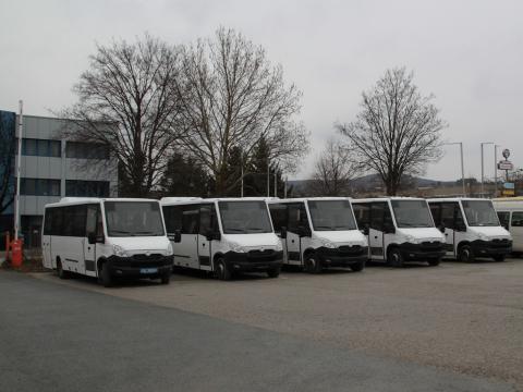 In Hornstein konnte ich eine parade neuer, weißer Kutsenits Citybusse für Postbus aufnehmen.