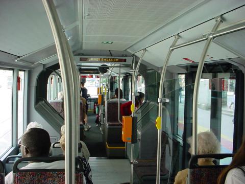 Citaro NG Innenansicht. Inzwischen Standard sind die zweite Zielanzeige vor